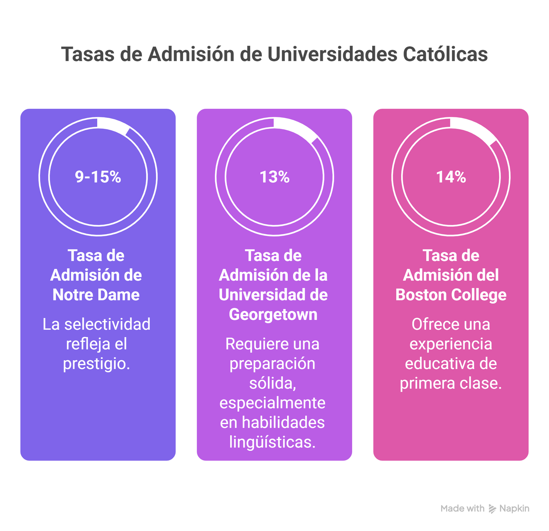 Más Selectivas: Notre Dame (9%), Georgetown (13%), Boston College (14%)